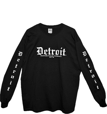 Enjoy this comfortable long sleeve cotton t-shirt with the Detroit Motorcycle Company logo across the front and Detroit running down both sleeves. Great for cooler weather or just staying out of the sun. Made of 100% pre-shrunk cotton. Machine washable.
